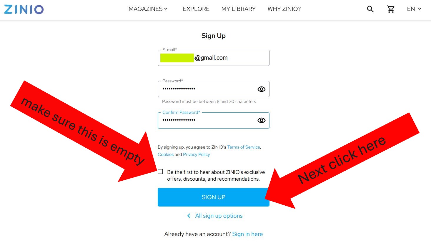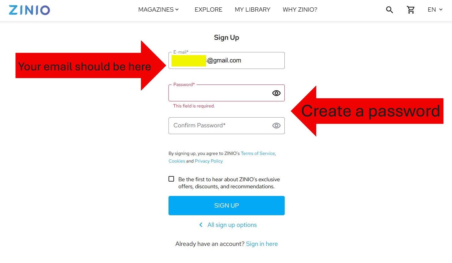 If you are brand new or let your print subscription of THE LATEST SCOOP® expire, you’ll need to create an account. Here’s how to create an account on ZINIO to view the digital version of THE LATEST SCOOP®