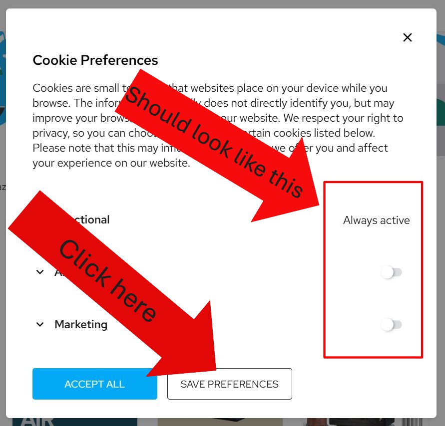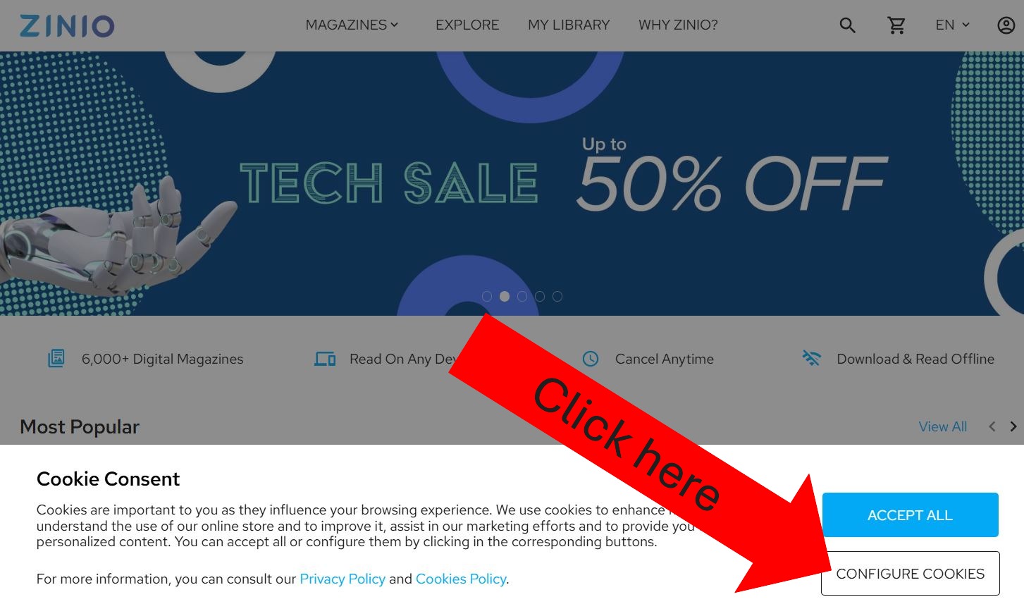 2. A cookie consent might pop up. Cookies help the website work on your computer. Click “Configure Cookies”